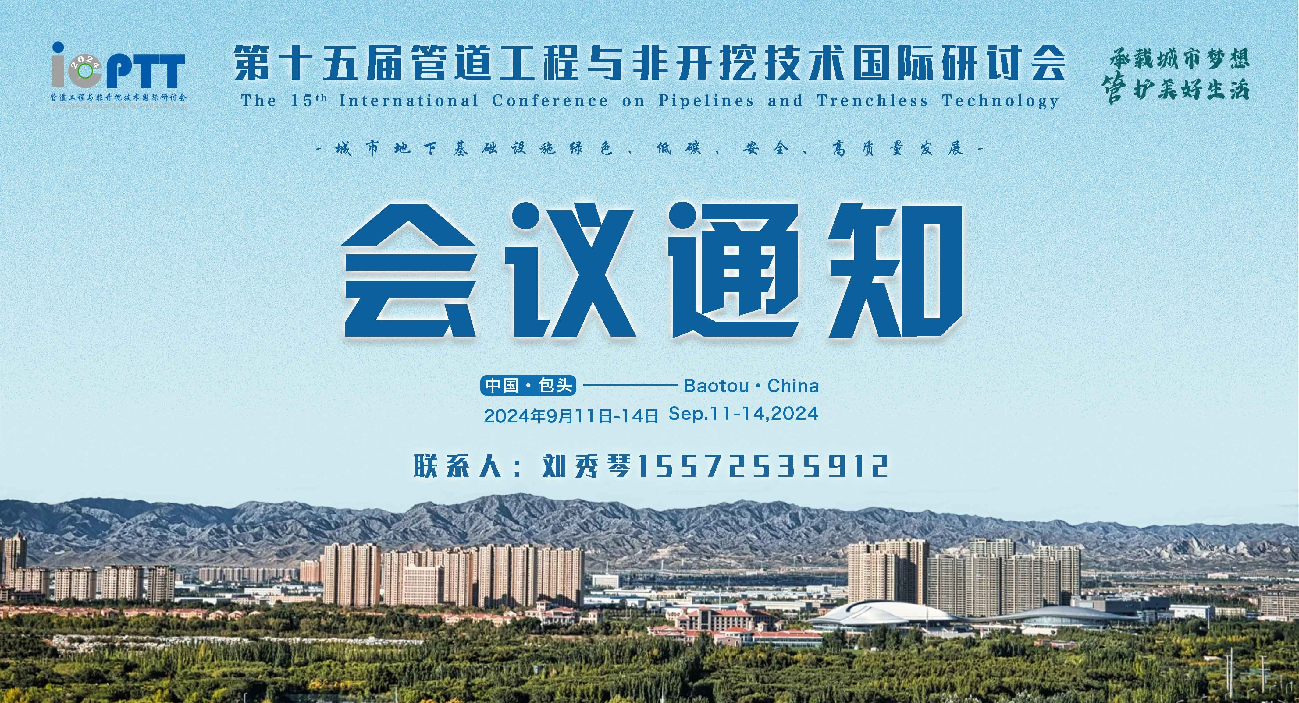 關(guān)于召開“第十五屆管道工程與非開挖技術(shù)國(guó)際研討會(huì)(ICPTT2024)”的通知 各有關(guān)單位: 為了持續(xù)更好地推動(dòng)管道工程和非開挖技術(shù)領(lǐng)域創(chuàng)新性科研成果、新技術(shù)和先進(jìn)工程經(jīng)驗(yàn)的探討、交流和復(fù)雜問題的協(xié)同研究,促進(jìn)管道與非開挖工程領(lǐng)域政、產(chǎn)、學(xué)、研、用的共同進(jìn)步,快速提高管道建設(shè)水平,服務(wù)于我國(guó)城市地下管線基礎(chǔ)設(shè)施建設(shè)與更新改造,中山大學(xué)、內(nèi)蒙古科技大學(xué)、同濟(jì)大學(xué)、鄭州大學(xué)、中國(guó)地質(zhì)大學(xué)(武漢)、長(zhǎng)江生態(tài)環(huán)保集團(tuán)有限公司、壩道工程醫(yī)院等單位將于2024年9月11-14日在中國(guó)包頭市共同組織